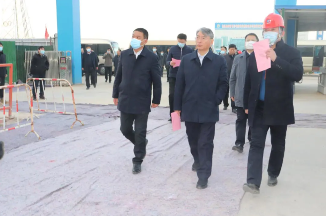 1月18日梁山县委书记贾治阜带领县直机关及各乡镇负责人来betway88西汉姆联梁山分公司调研。杨营镇党委书记高峰,汪新阔总指挥等陪同。