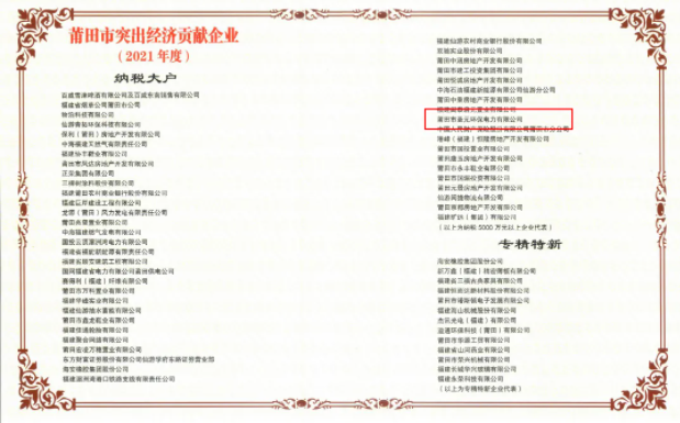 图:2021年度莆田市突出经济贡献企业名单