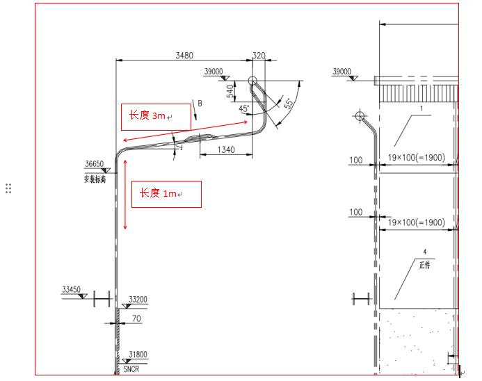 1、此次施工内容为更换前墙水冷壁70根(每5根为一组),更换长度为弯管下部1000mm,弯管上部3000mm,详见图1