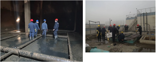 检查、更换、清洗硝化池曝气膜管