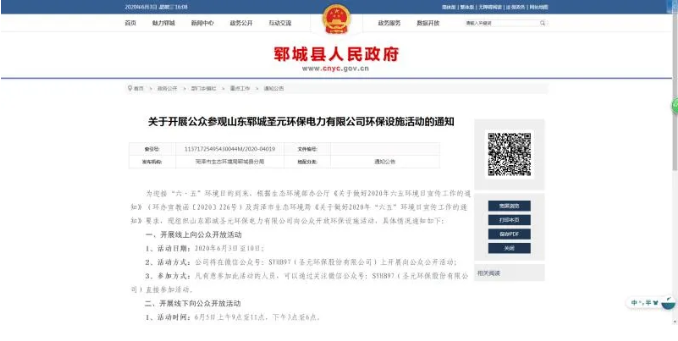 6月3日至5日,郓城betway88西汉姆联组织开展公众参观公司环保设施活动。活动分线上与线下两部分。公众既可通过关注企业公众号线上参与,也可通过预约报名的方式线下参与。为做好预约报名工作,郓城betway88西汉姆联将已编制的《2020年“六·五”环境日宣传工作实施方案》在郓城县人民政府网站公示,同时将6月5日设为公司环保设施公众开放日。
