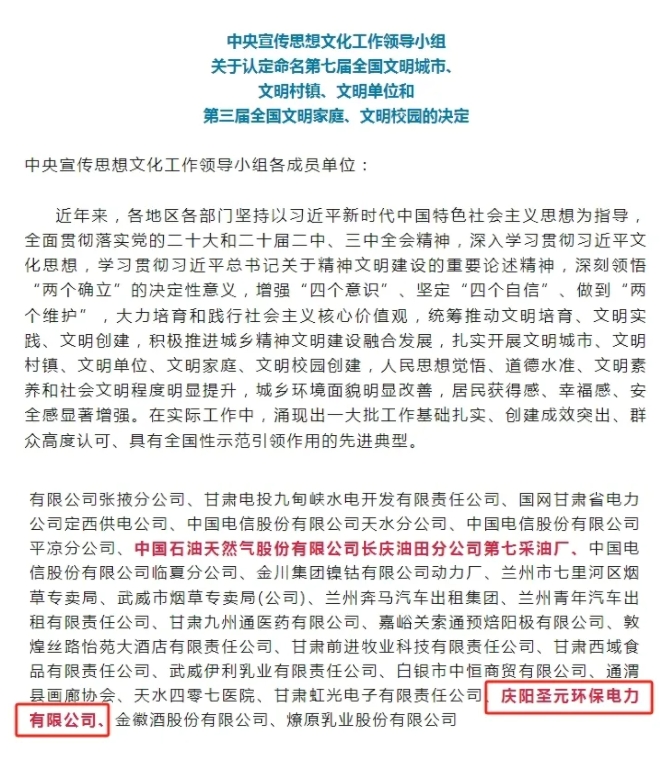 5月23日,中央宣传思想文化工作领导小组正式公布第七届全国文明单位名单,庆阳betway88西汉姆联荣膺第七届“全国文明单位”称号。“全国文明单位”评选每三年一届,是全国精神文明建设领域的最高荣誉,旨在表彰一大批工作基础扎实、创建成效突出、群众高度认可、具有全国性示范引领作用的先进典型。这一国家级荣誉不仅是对庆阳betway88西汉姆联多年来深耕焚烧主业与文明创建的高度认可,更是激励庆阳betway88西汉姆联在未来开拓创新、继续奋进的强大动力。