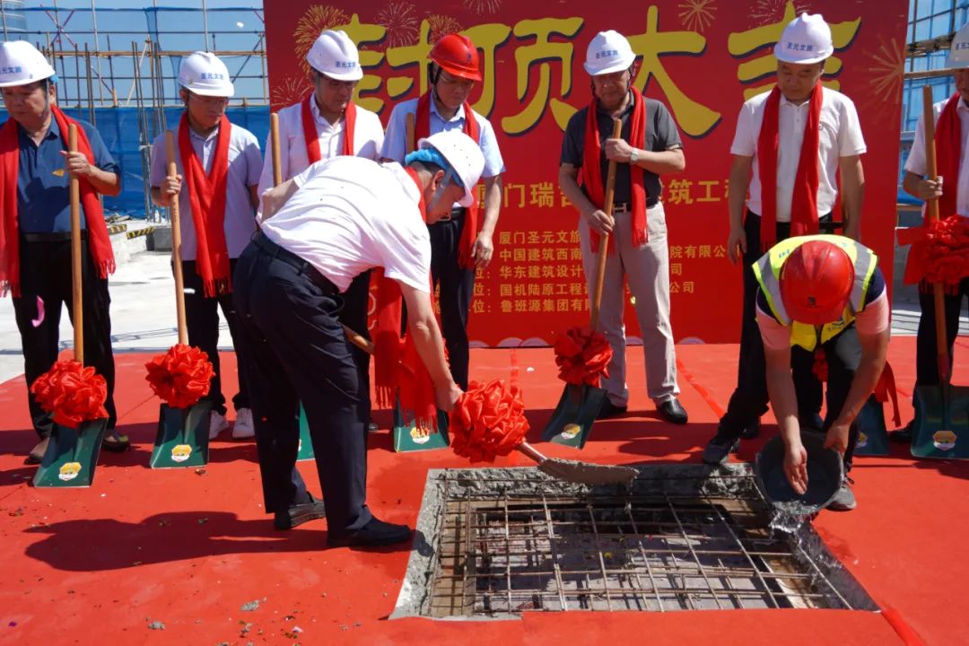 封顶仪式对项目具有重要的里程碑意义,标志着项目从主体阶段进入装饰装修阶段,为加快瑞吉酒店的精装修和如期竣工开业迈出了最坚实的一步。