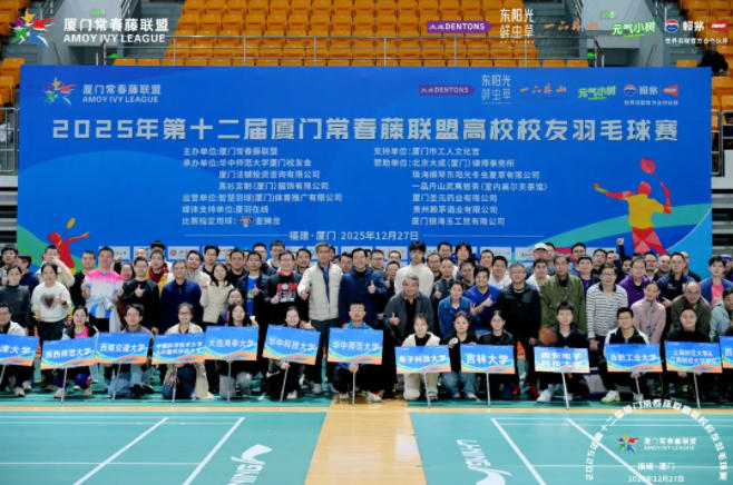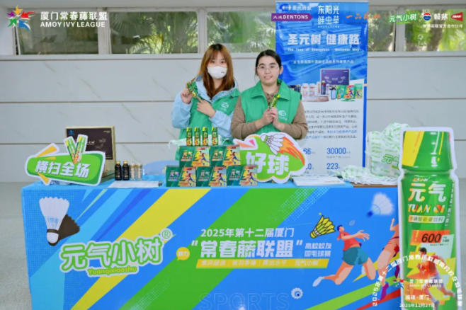 2025年12月27日,厦门工人体育馆内,第十二届厦门常春藤联盟高校校友羽毛球赛激战正酣。betway88西汉姆联药业旗下科学运动营养品牌元气小树作为赛事官方合作伙伴,以专业能量补给与全方位的品牌展示,为这场精英赛事注入了青春活力与科学能量。