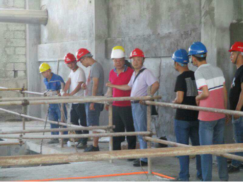 检查后,林副站长表示北峰厂提标改造项目的施工进度在本市污水处理厂提标改造项目中处于领先位置。林副站长对外立面墙砖的铺贴质量及观感尤为满意,并要求各参建单位在后续施工中严格按照规范进行作业,在保质保量的前提下,争取提前交付使用。