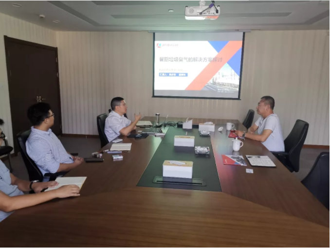 杭州楚环科技董事长陈步东为考察组讲解臭气解决方案