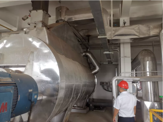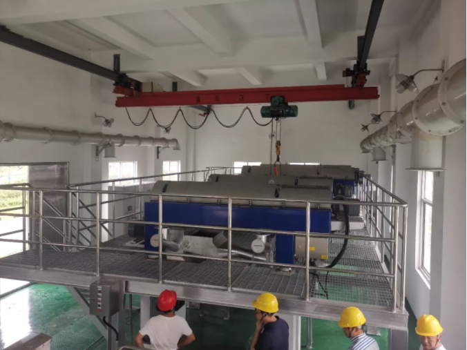 考察组在常州无锡国联环保污泥干化机进料口